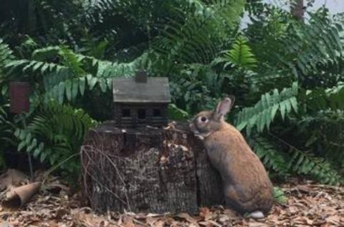 This backyard glade has sometime been the home to pet rabbits, who find the vegetation quite delicious. The bubbling fountain attracts every kind of bird, and many small beasts.